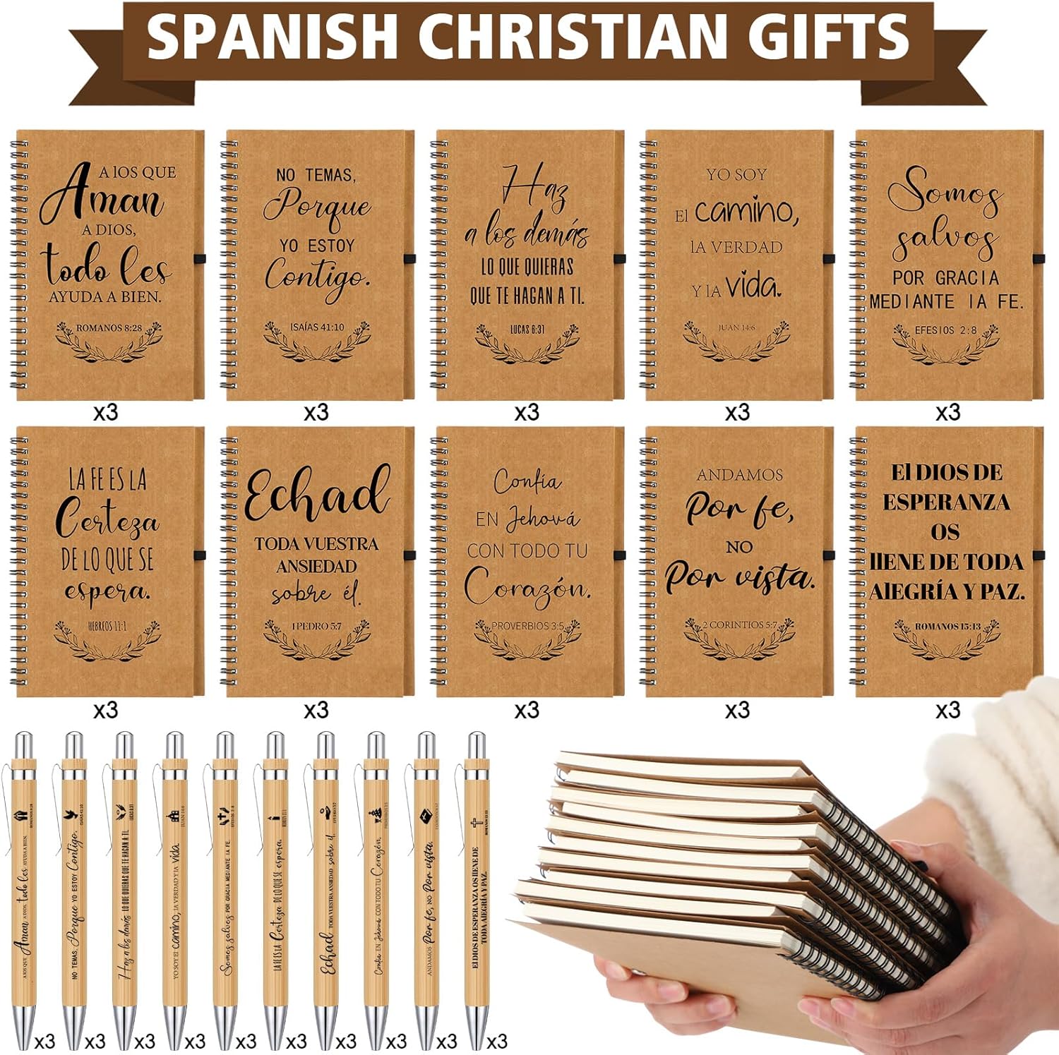 Notebook and Pen Gift Set: Spanish Christian gift set includes 30 Bible verse notebooks and 30 matching ballpoint pens, which are easy to carry and suitable for church gatherings, Bible study groups or Christian themed events