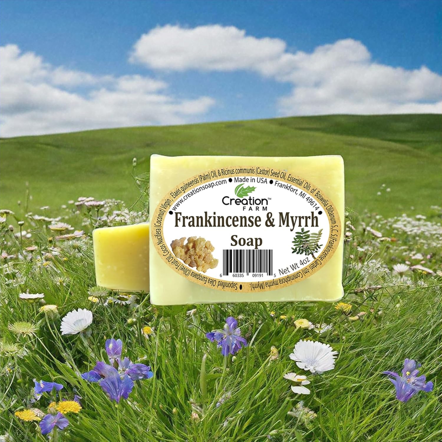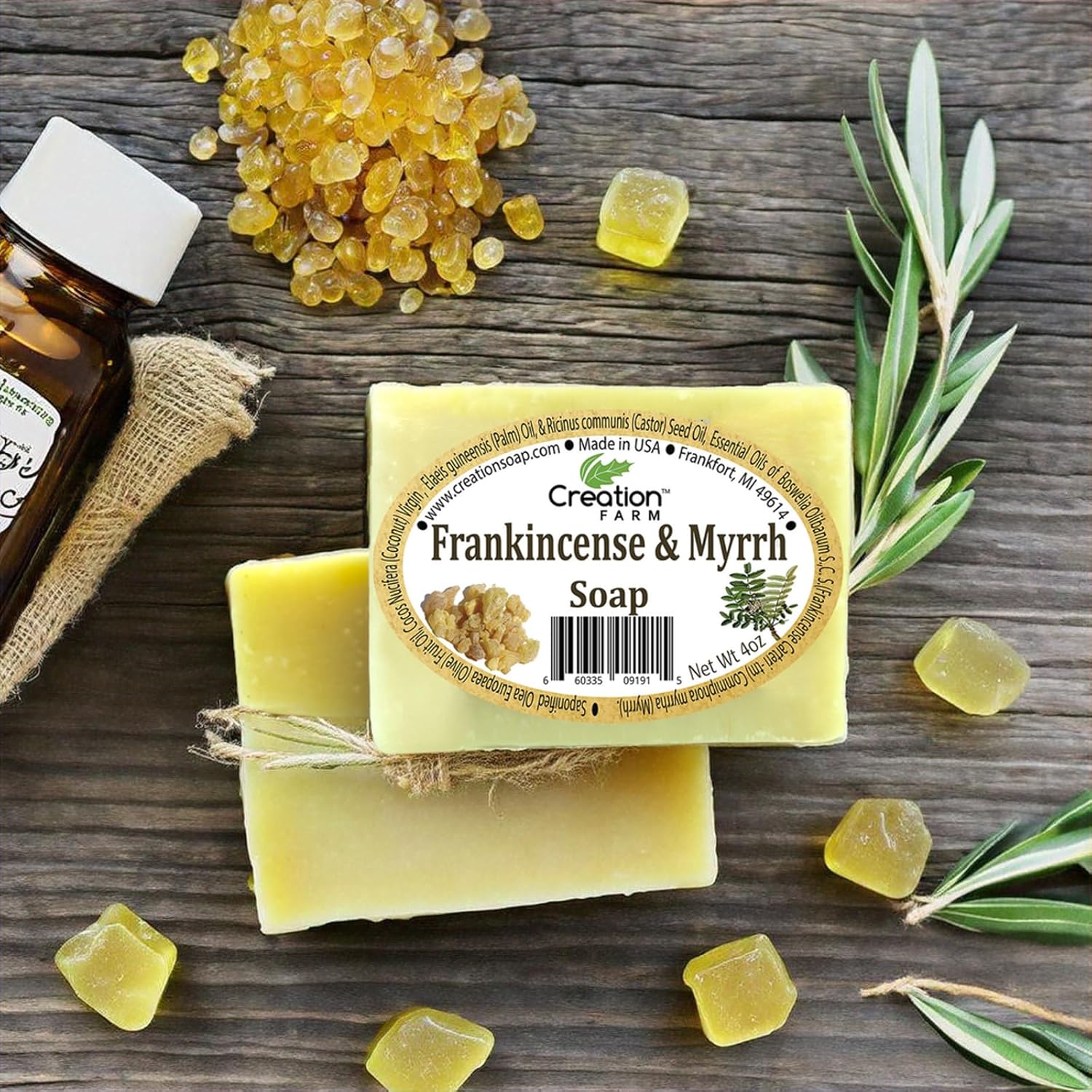 Creation Farm Frankincense and Myrrh Soap 2 Pack of 4 oz Bars Handmade Artisan Soap with Frankincense Oil, Myrrh Resin, Olive, Coconut, Castor, and Palm Oils