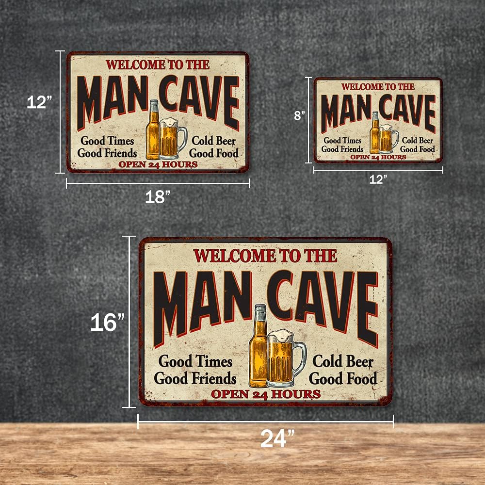 Man Cave Sign Garage Décor Mancave Signs Decorations Retro Vintage Wall Art Tin Pub Bar BBQ Rustic Home Beer Shed Dads Fathers Plaque Gift 8 x 12 Matte Finish Metal 108120068022