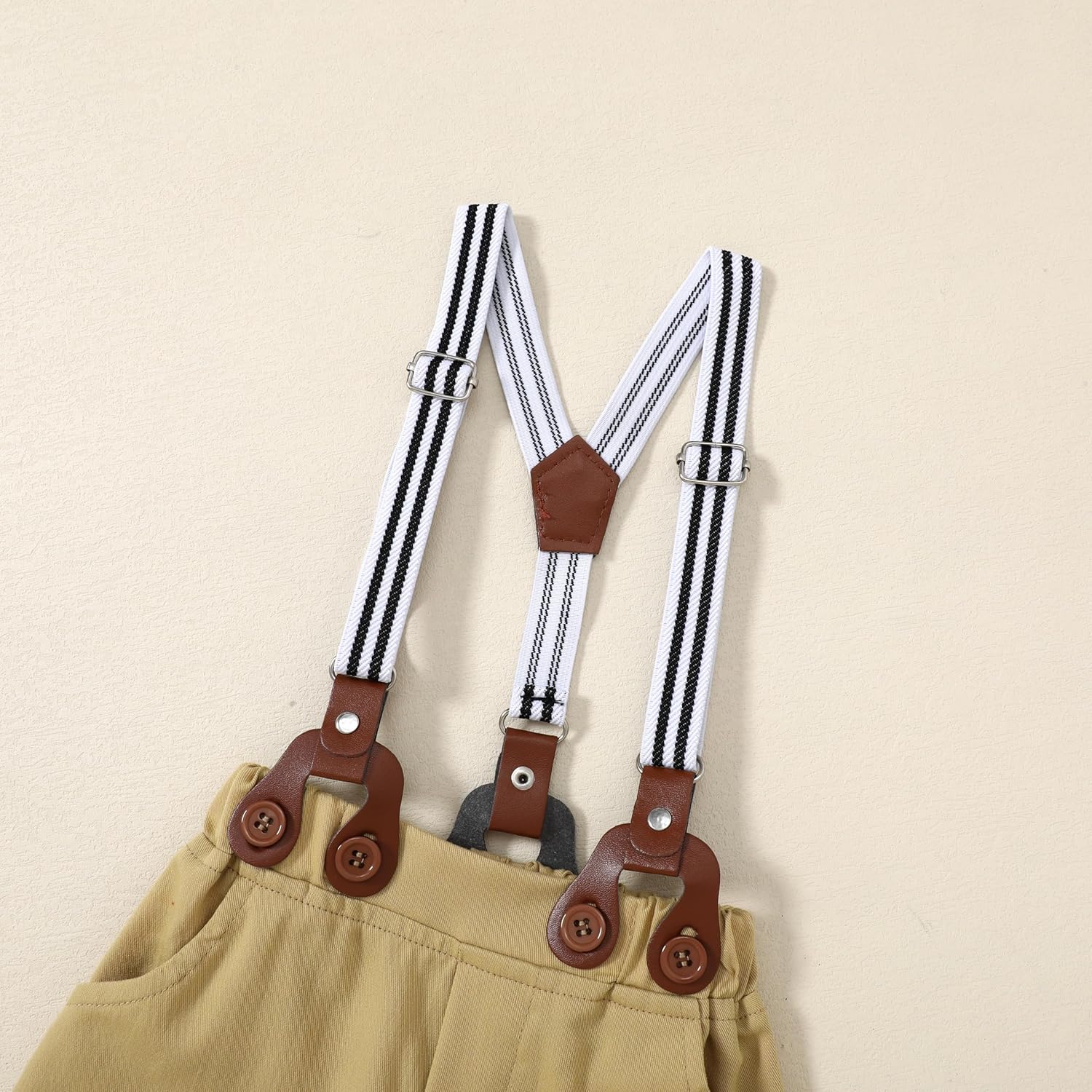I bought this for a wedding that we’re going to. I think it’s really cute and very soft and comfortable for my baby. I personally am not a fan of suspenders because I feel like constantly fall down so I didn’t put him in those but the outfit looks cute without them. I put it at 4 stars because I feel like you should size up. My baby had just turned 4 months old in that picture, and I thought a size 6-12 month. It fit him perfectly so definitely size up. Hes an “average” sized baby for his age as well.Overall super cute, love the price as well!